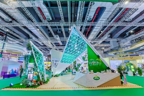 今年,Arla展台以“纯净之境”为设计理念,融合斯堪的纳维亚风格与自然主义美学,强调建筑与自然环境的和谐共生。设计灵感源自丹麦著名建筑Iceberg(冰山住宅),以冰川的锐利形态塑造出强烈的视觉张力;内部空间则开放通透,运用原木材质平衡冷暖视觉,营造出丹麦人悠闲舒适的生活氛围,传递出人与自然和谐共生的理念。观众可沉浸式体验来自北欧的纯净之美,感受Arla将自然与纯净融入日常生活的品牌承诺。