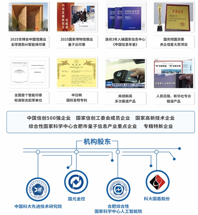 全球首款三实AI“零信任”量子云印章,是由云玺量子,联合中电信量子和科大国盾量子多年研发。新一代量子云印章深度融合量子加密、AI视觉分析与主动防御的手自一体印控技术,具有实现本体全功能印控,用印全流程AI智能审计管控,用印全程“三实”影像记录(实人、实章、实文),该产品真正实现了未来云办公的“零漏洞”智能印章风控管理。目前已在华为、华润 、国网、国能、字节、美的、宁德时代、富士康、蔚来、赛力斯等企业广泛应用,并在中小企业和基层智能村章中推广应用。