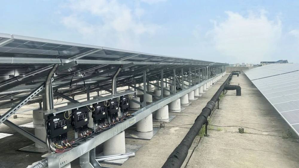 该项目坐落于江苏省扬州市,总装机容量约6.45MW,充分结合家电企业厂区空间特点,最大化利用4个屋顶资源,包括混凝土与彩钢瓦屋顶,实现了光伏系统与现有厂房的高效适配。在核心设备配置上,项目采用“优质微逆+高效组件”的黄金组合,共配置1800余台微型逆变器QT2D和万余块光伏组件,是探索家电业与光伏新能源领域合作、提升产业融合发展效能的生动实践。